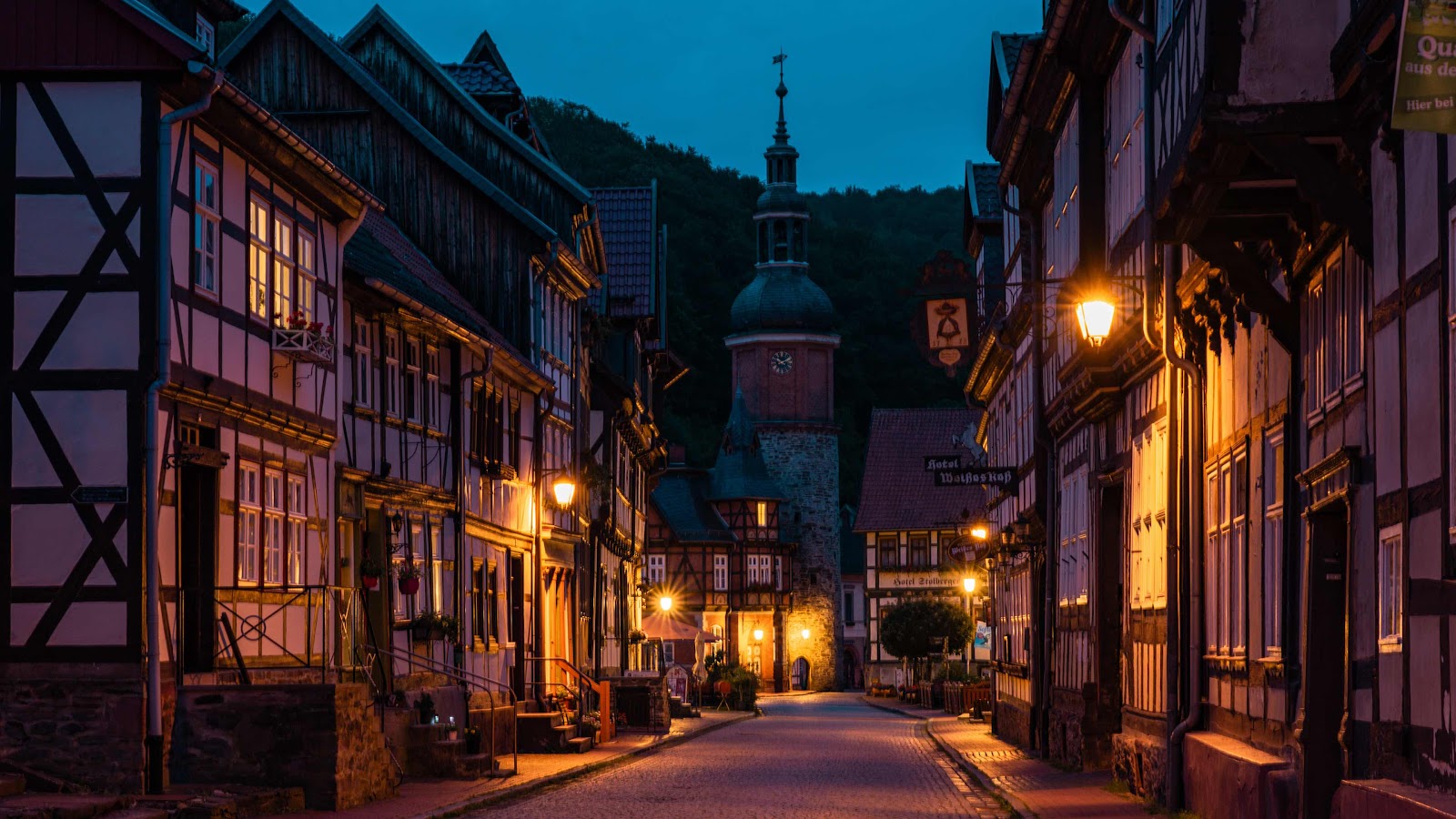 På onsdagen hade vi en kortare resa, så vi passade på att ta två stopp i charmiga och medeltida Wernigerode och Quedlingburg. Både var verkligen värde ett stopp, men målet för dagen var Stolberg im Harz. Byn har utsetts till Tysklands vackraste by, men tyskarna själva verkar inte ha koll på detta. Förutom trafiken som körde genom stan var det väääldigt lugnt, men ack så vackert. Det gick ju inte att låta bli en kvällspromenad för att se hur de gamla gatubelysningarna lyste upp hus, som byggts från tidigt 1500-tal och framåt.